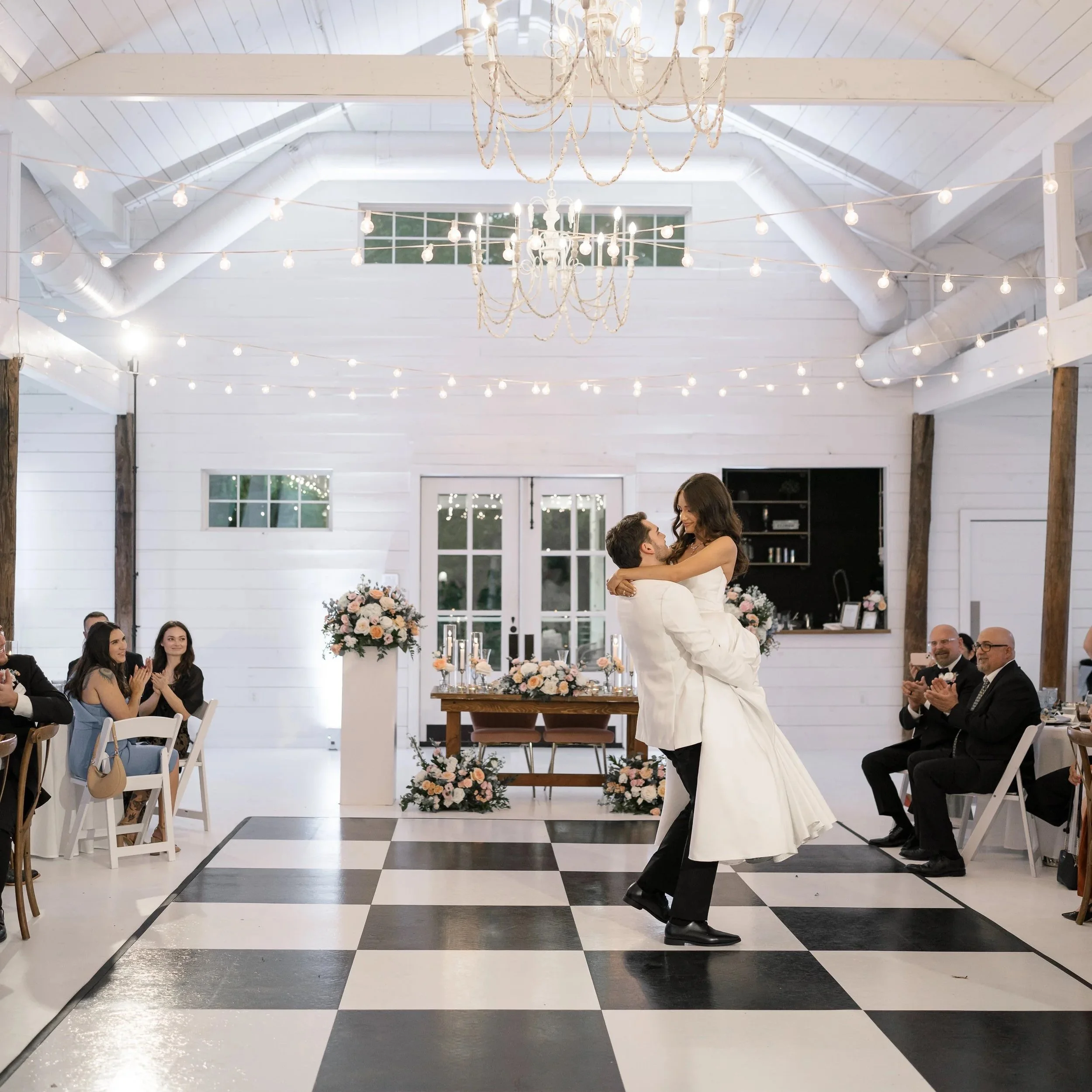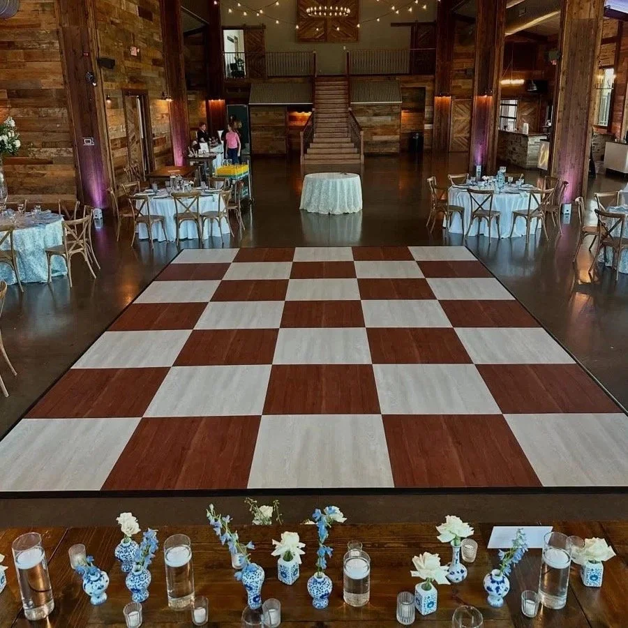 Make your reception space truly stand out with one of our custom dance floors. Choose between our classic black-and-white or warm brown-and-white checkered designs to perfectly complement your wedding style. More than just a place to dance, it becomes a statement piece that enhances the look and energy of your entire celebration.